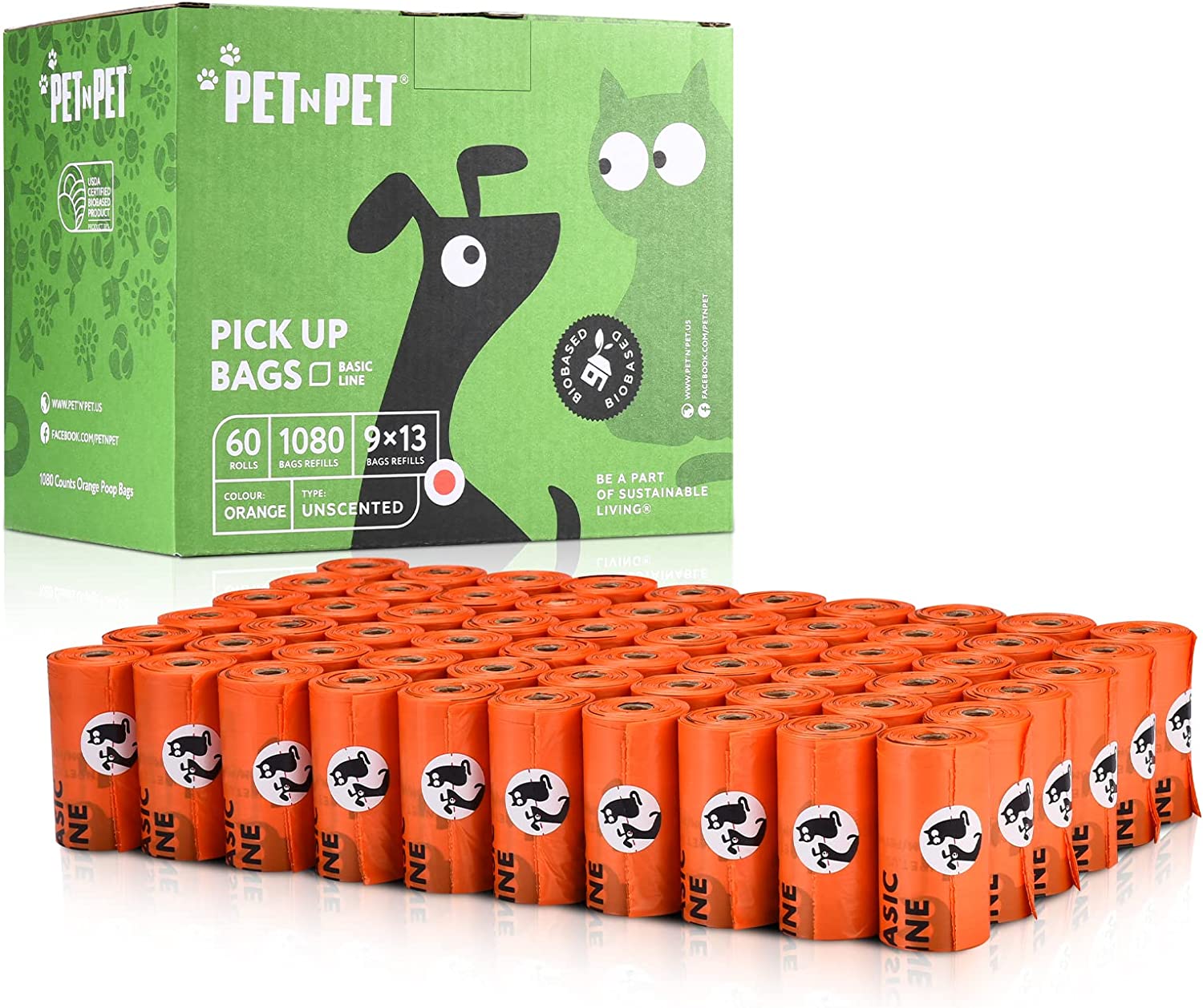 Dog Poop Bag USDA Certified 38% Biobased Poop Bags 1080 Counts 60 Rolls 9x13 Inches Dog Bags for Poop