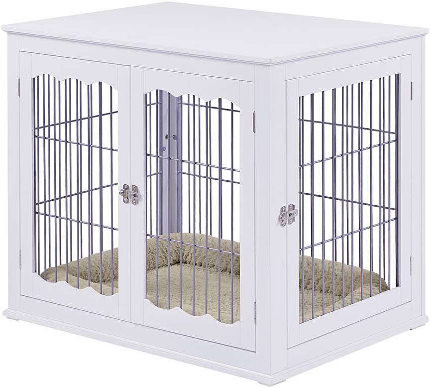 Furniture Style Dog Crate End Table Wooden Wire Pet Kennels with Double Doors