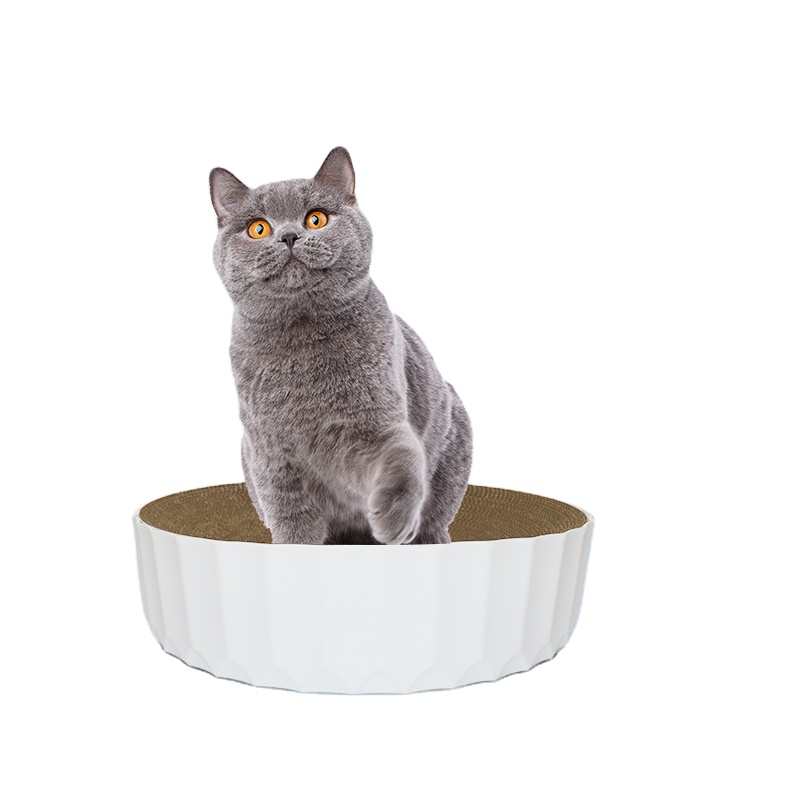 White Product Name | Round Cat Scratcher Cardboard 2 in 1 Cat Scratcher Bowl Round Scratch Pad for Indoor Cats |