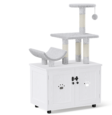 Cat Litter Box Enclosure, Hidden Cat Washroom Furniture with Cat Tree Tower, All-in-one Cat Indoor House with Platform, Scratchi